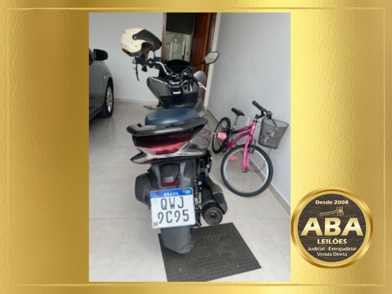 01 (Uma) Motocicleta, HONDA/PCX 150 SPORT ABS, na cor Prata, ano de fabricação 2019, ano de modelo 2020, de placa policial QWJ-9C95. Avaliado em R$ 14.500,00 (Quatorze Mil e Quinhentos Reais)